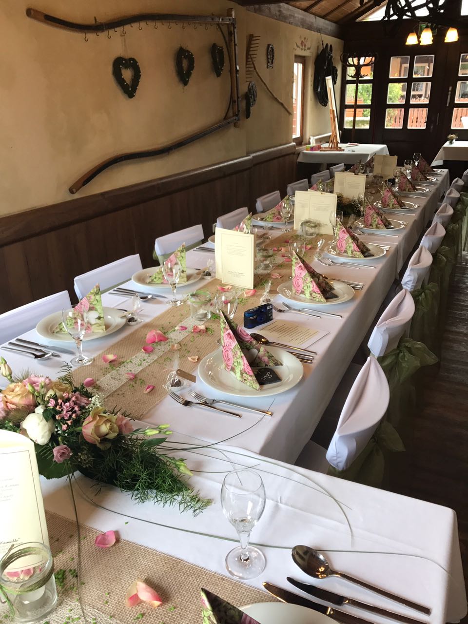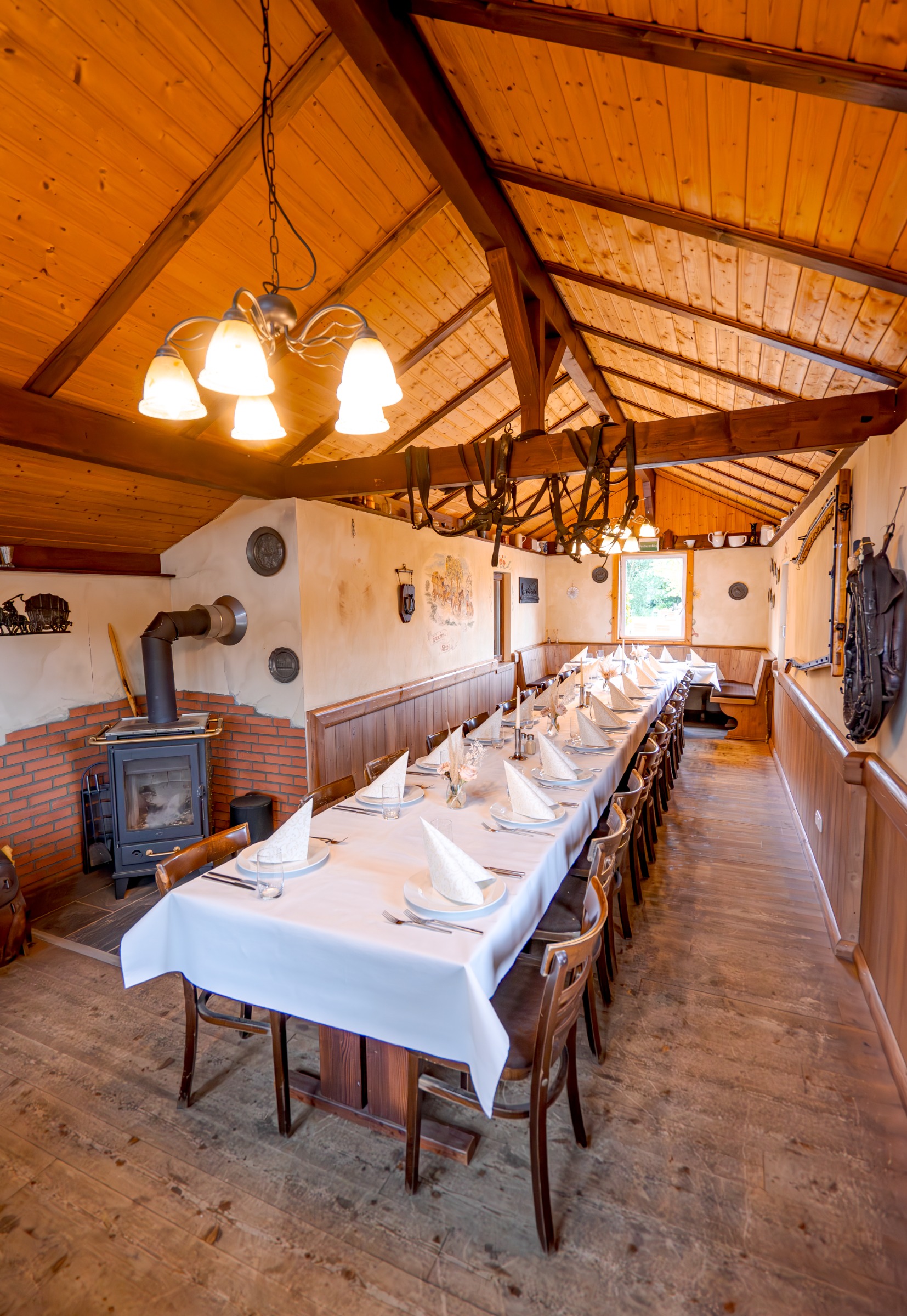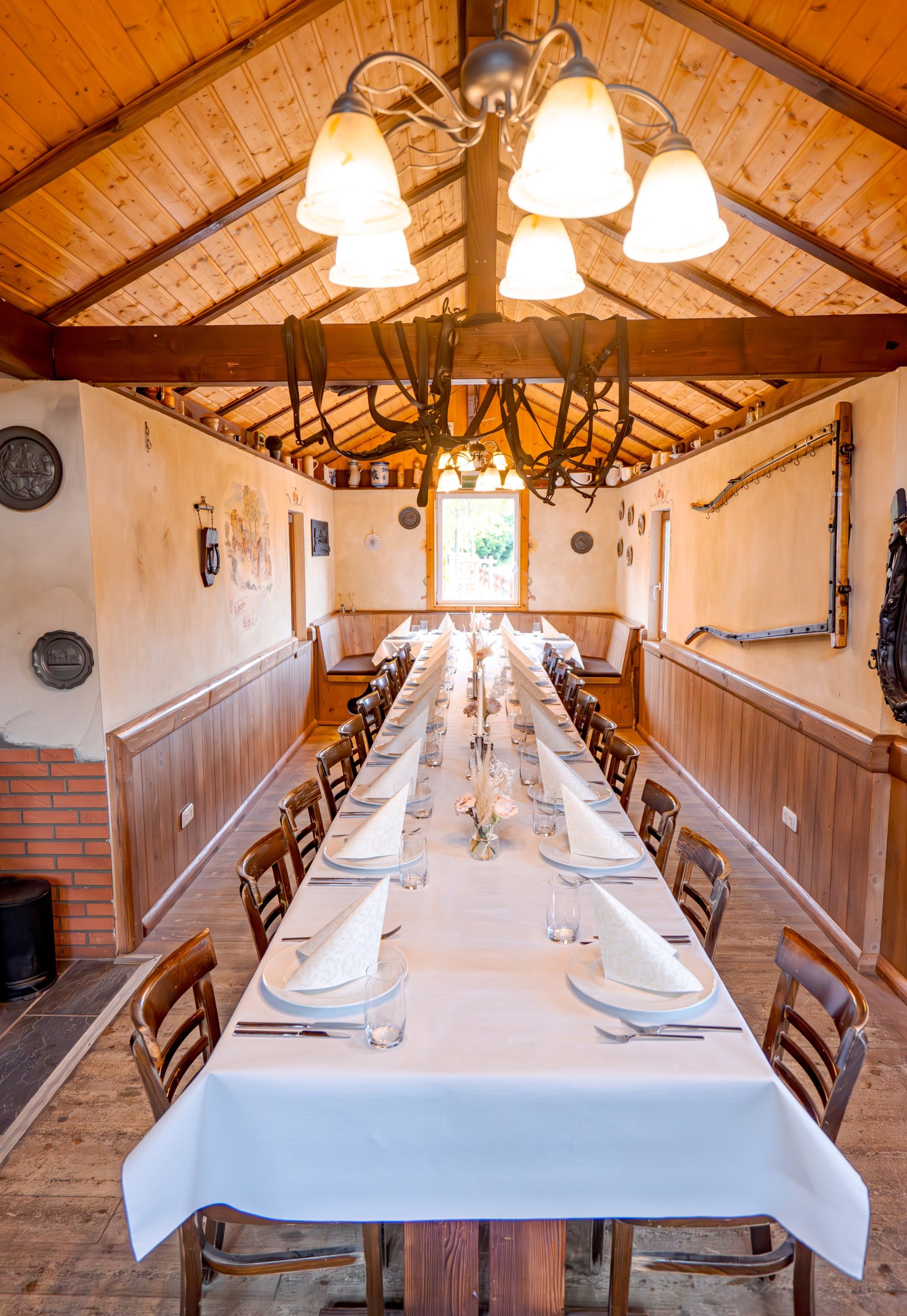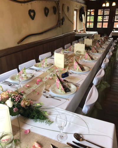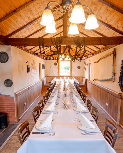 Unser Geheimtipp - die Kutscherstube eignet sich ideal für kleinere Feierlichkeiten von 20 bis 30 Personen. Sie beeindruckt mit dekorativen Elementen rund ums Thema Kutsche, die jeden Betrachter ins Staunen versetzen. Ländliche Wandmalereien entführen dich ein Stück weit in die Welt der Kuriere und Kutschfahrer.